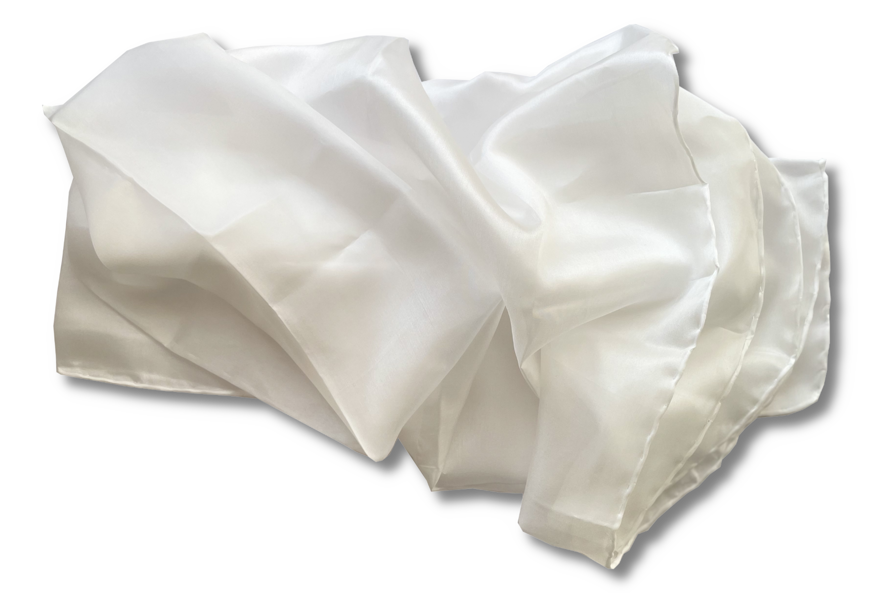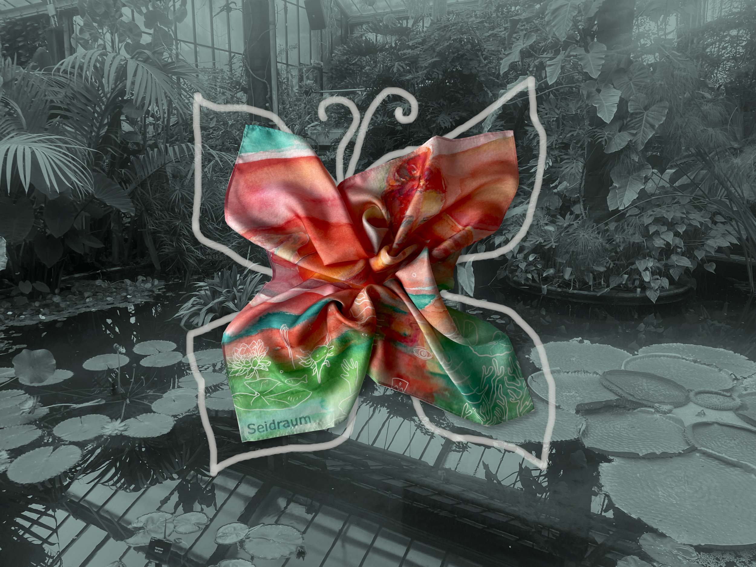 Seidraum offers two types of silk scarves: printed editions based on original artworks and one-of-a-kind batik pieces painted directly by hand on silk.
